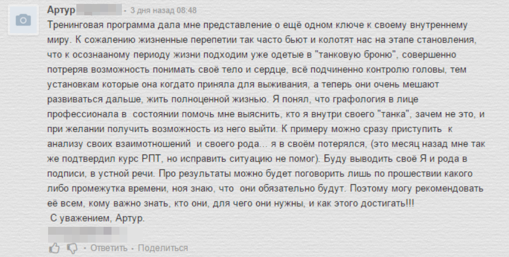 и развиваться дальше, Вы получите путем практического анализа собственного почерка.